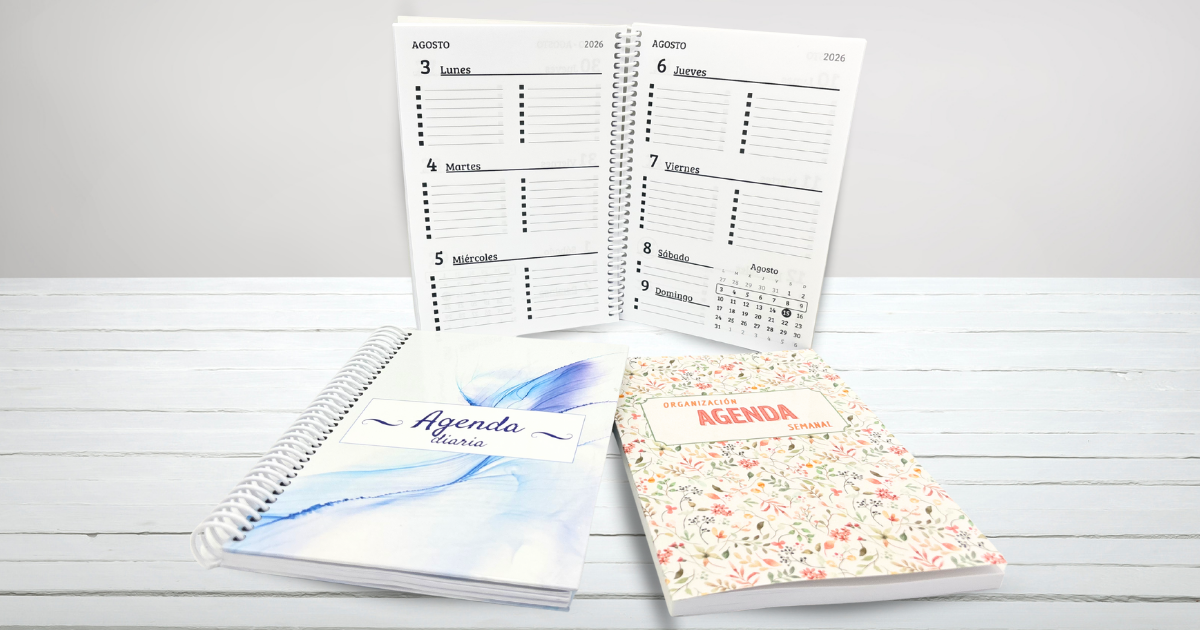 El interior ya está preparado. Las ideas, seguro, ya están rondando por tu cabeza. Así que no esperes más: empieza a diseñar tu agenda 2026 ahora y recíbela lista con tiempo.